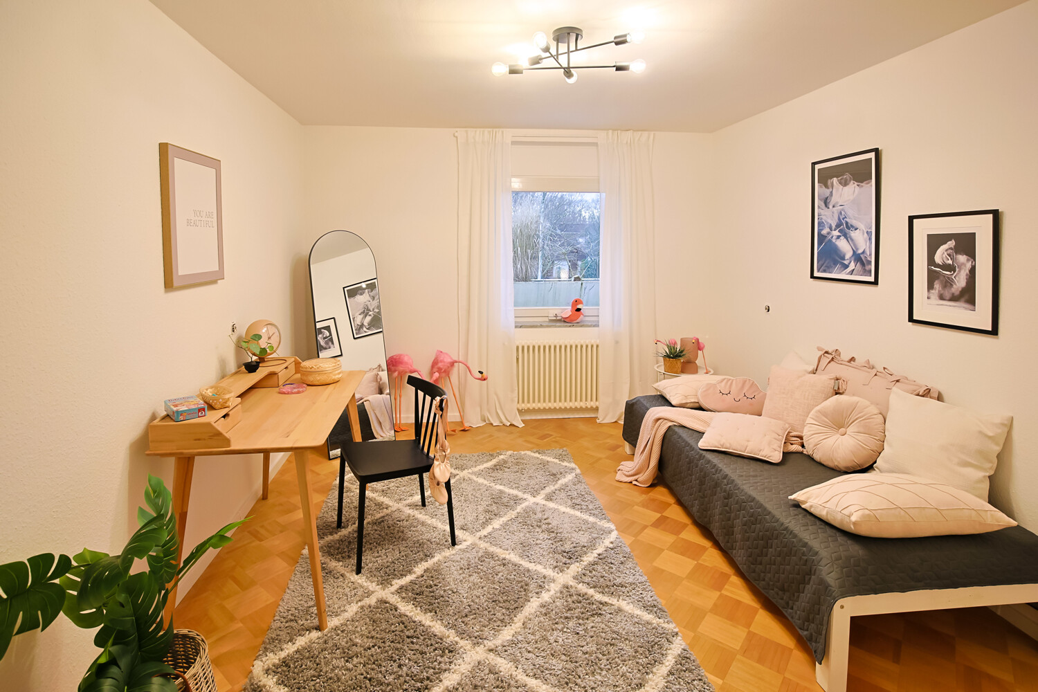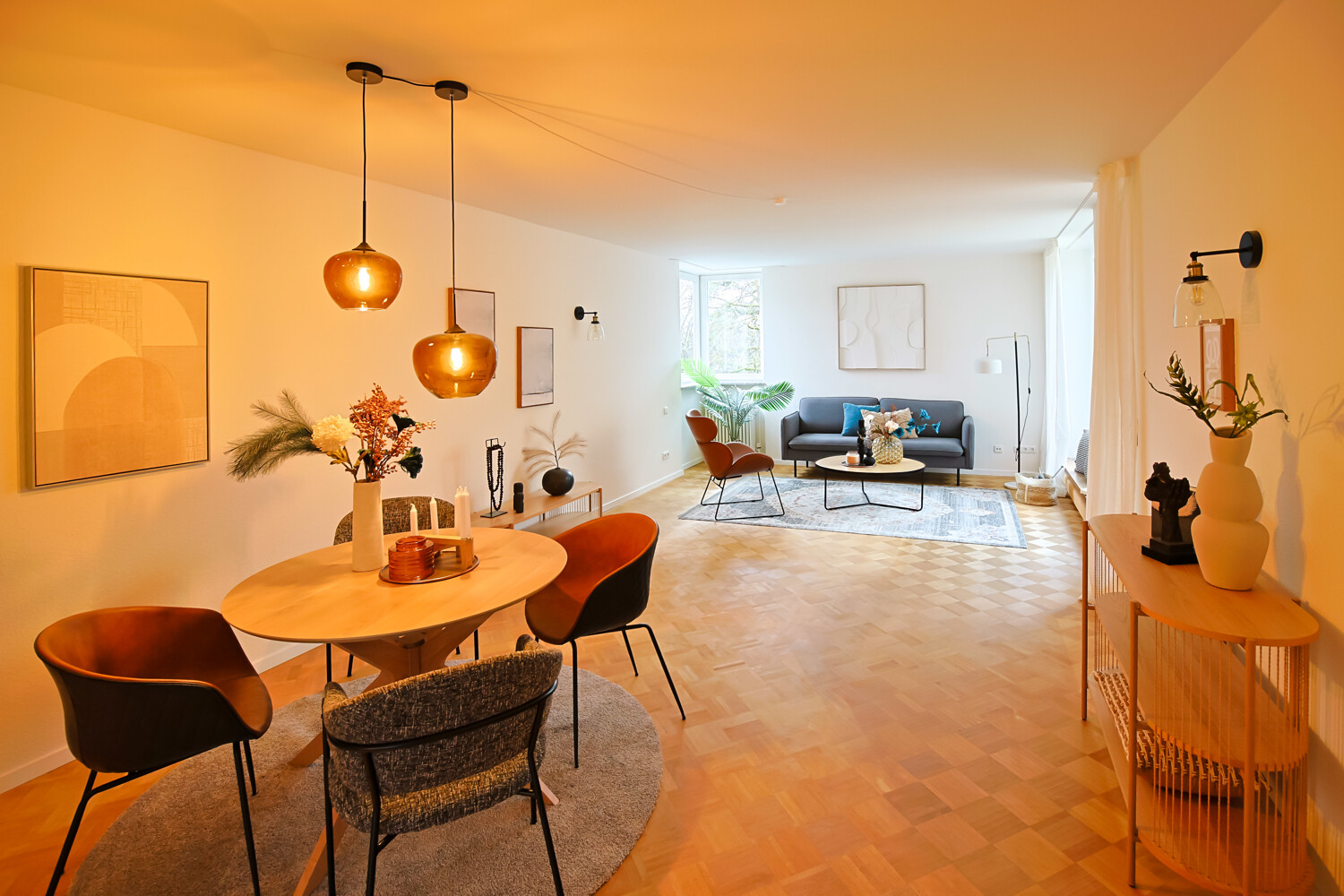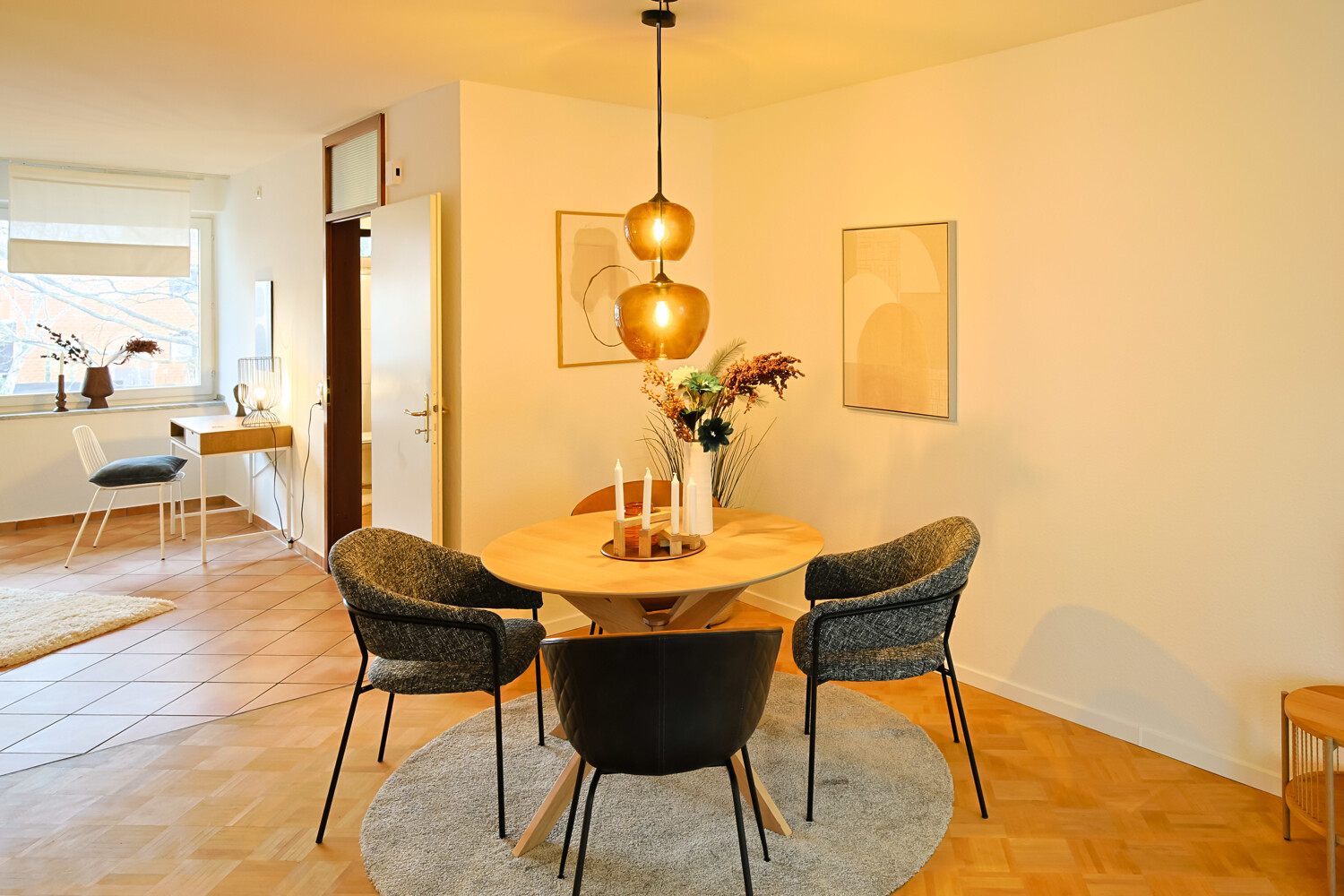 - Parkettboden im Wohnbereich und in den Schlafzimmern