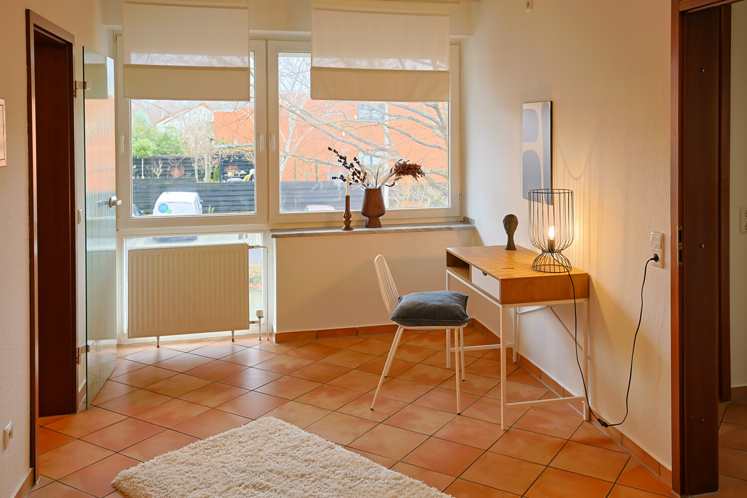 - Terrakottafliesen in Essbereich, Küche und Eingang