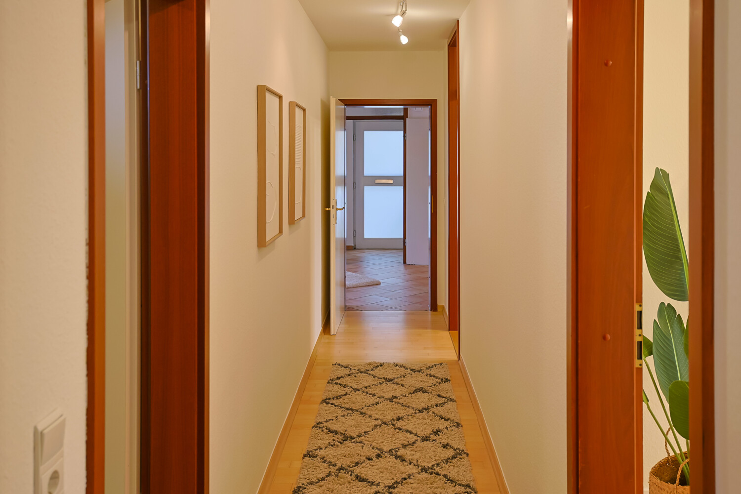 - Türen: weiße Holztüren und braune Holzzargen