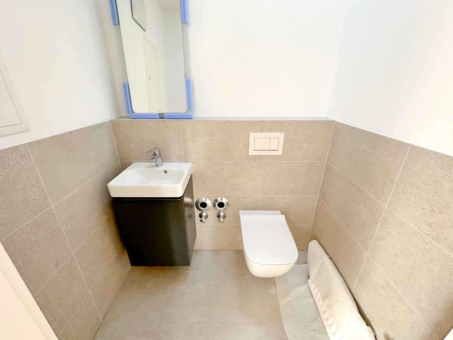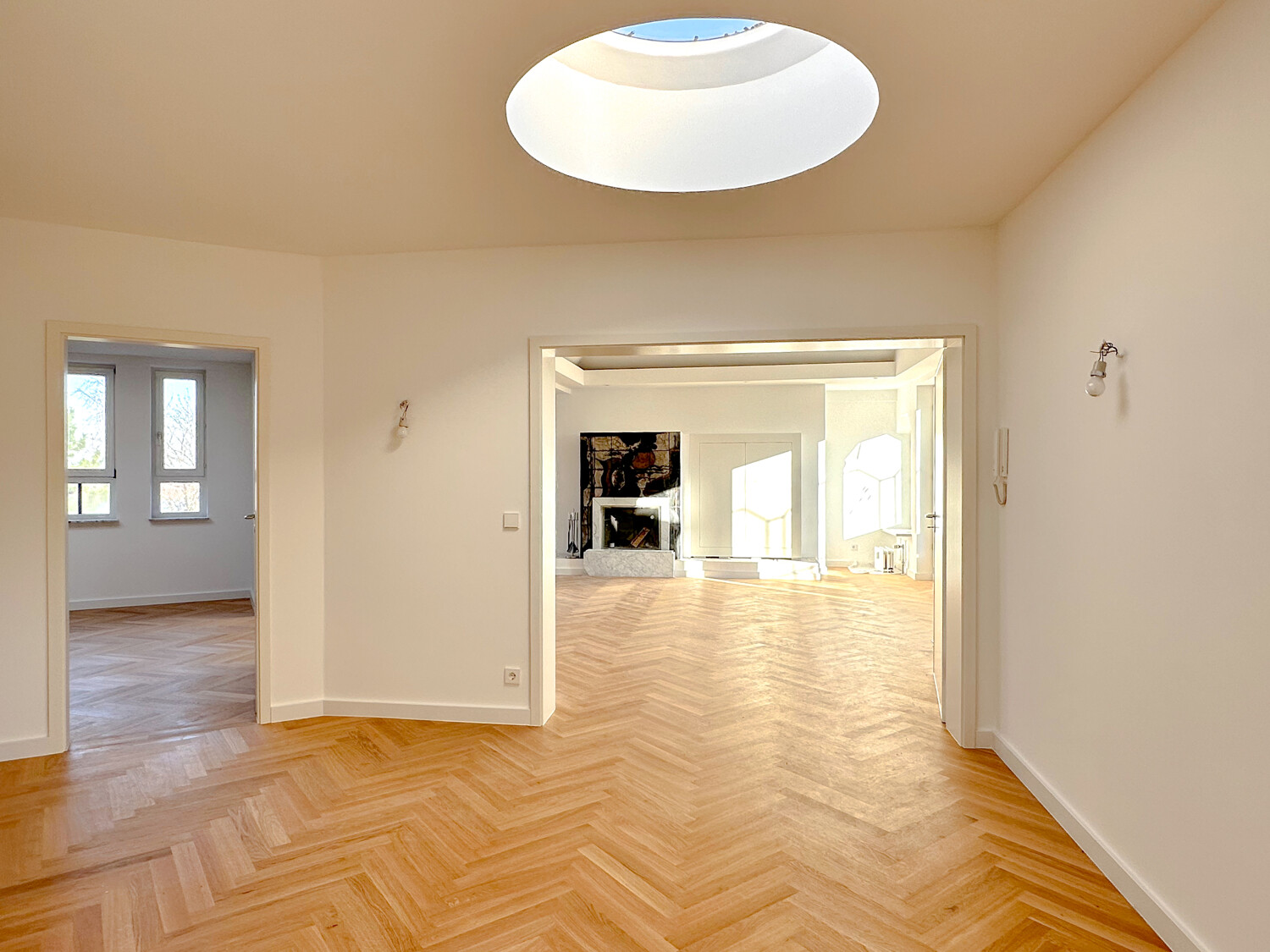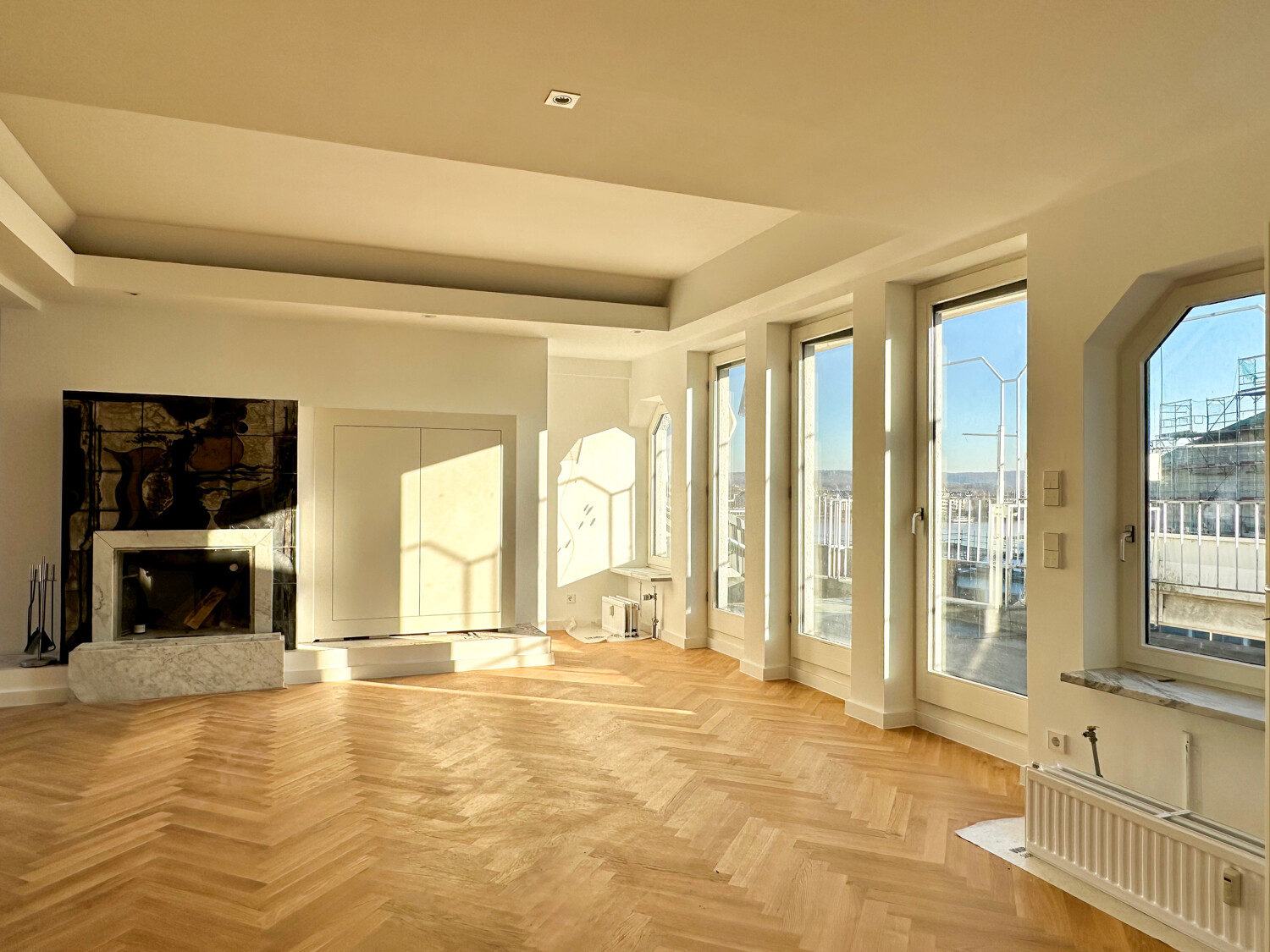 Im gesamten Penthouse wurde hochwertiges Parkett in Fischgrätenoptik verlegt, welches der Wohnung ein luxuriöses und hochwertiges Wohngefühl verleiht. Auch die Bäder wurden im Zuge der Sanierung neu gefliest und mit hochwertigen Sanitärobjekten ausgestattet.