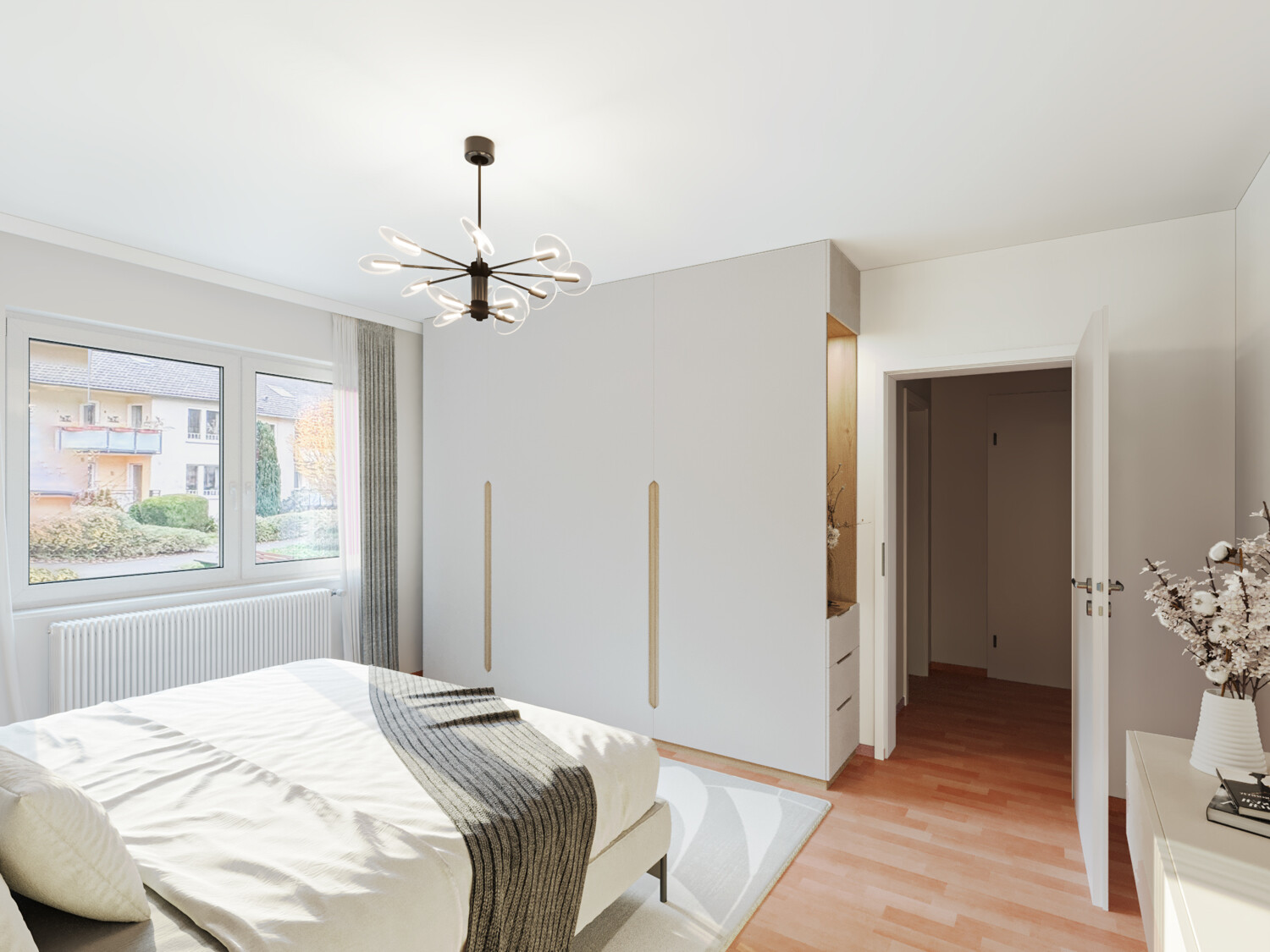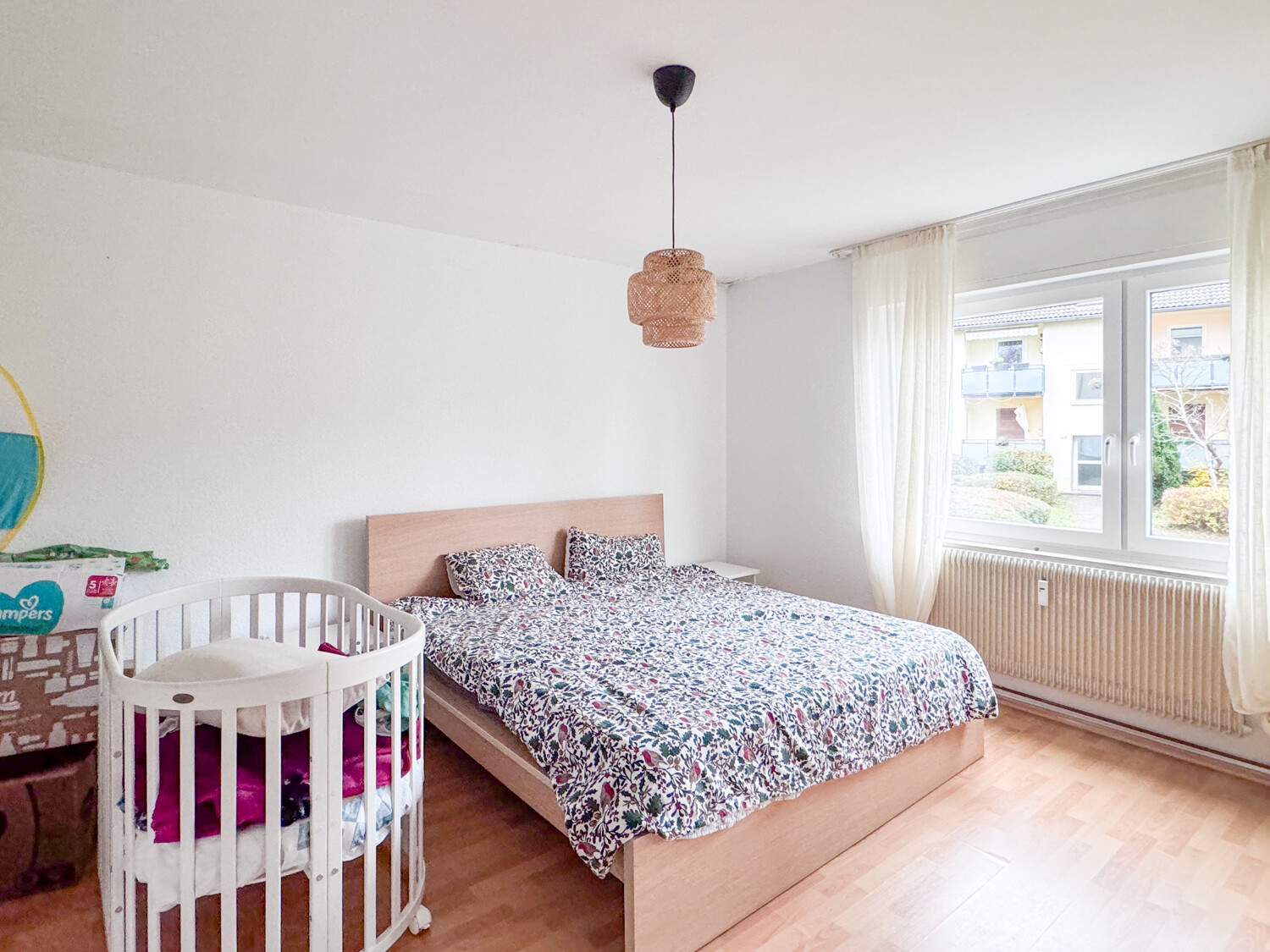 Das große Schlafzimmer bietet Ihnen genug Platz für ein großes Bett und einen Kleiderschrank.