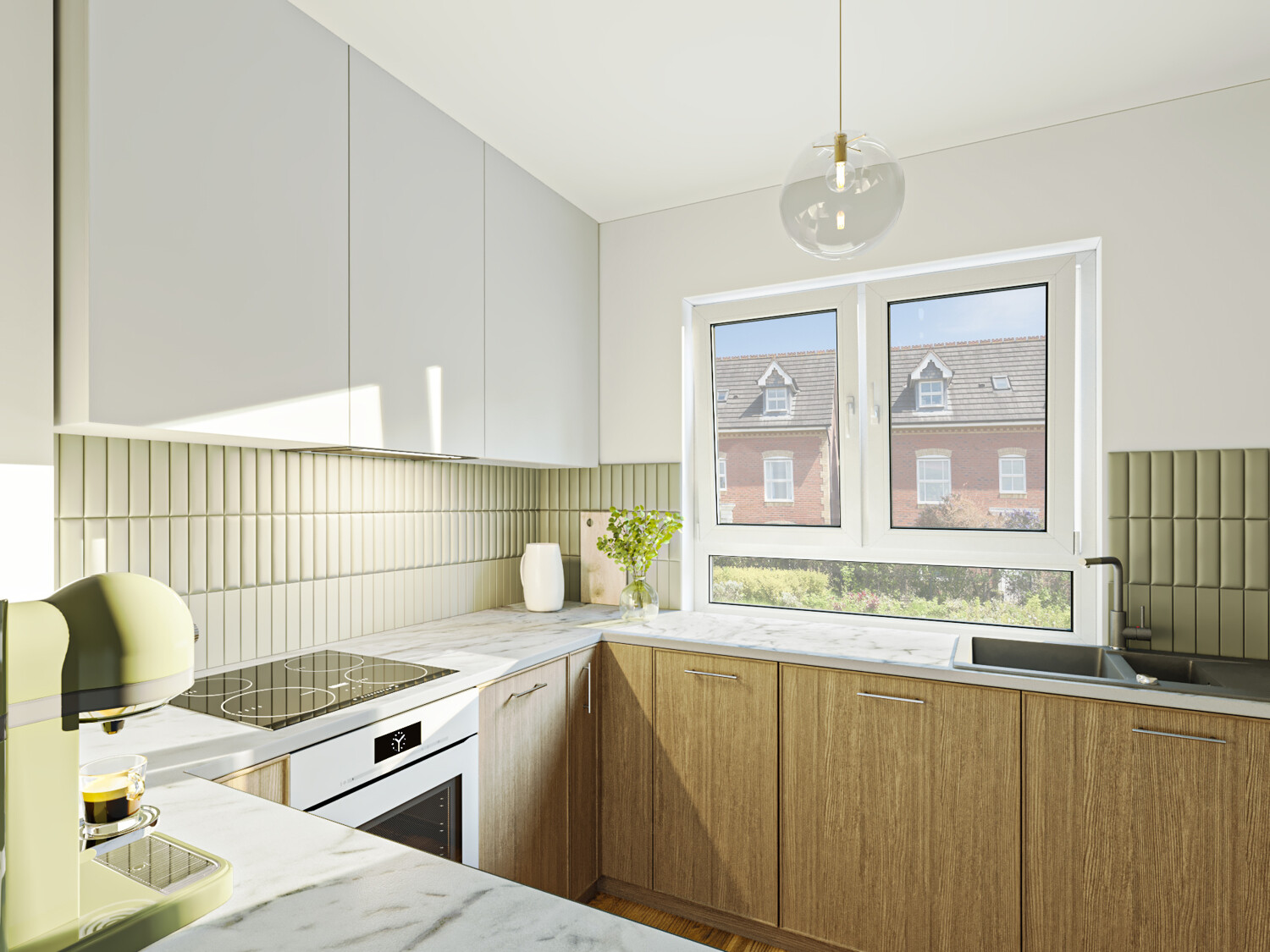 Sie besticht durch ihren praktischen Grundriss, den großzügigen Fenstern und dem Blick ins Grüne.