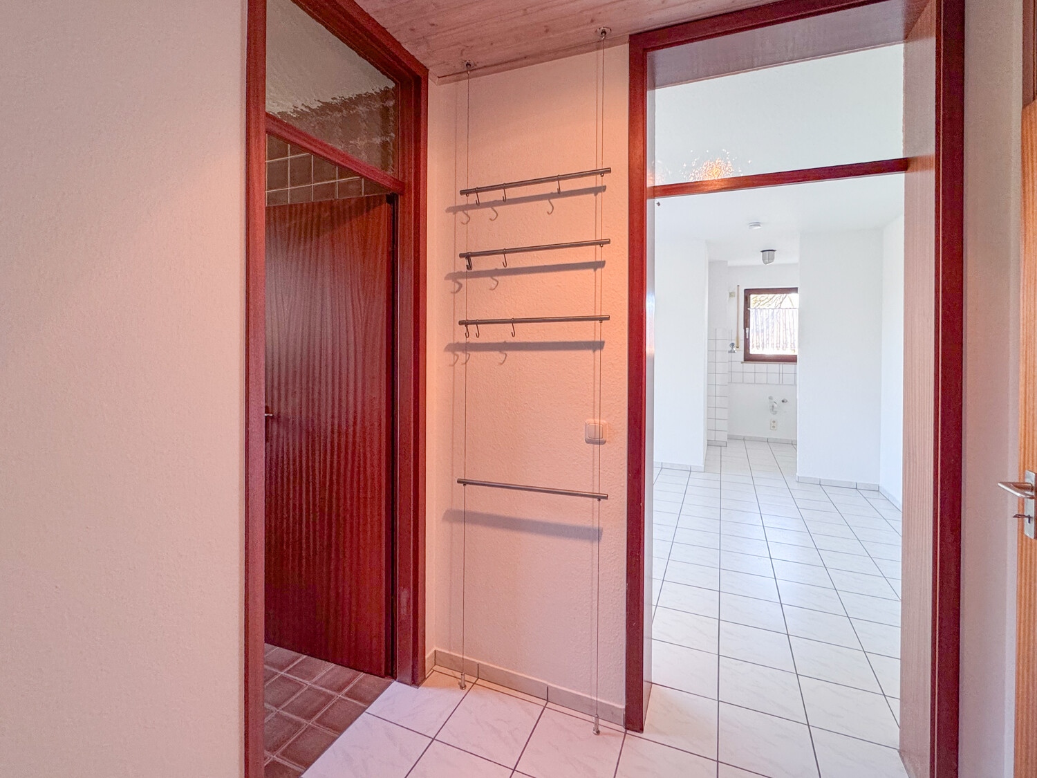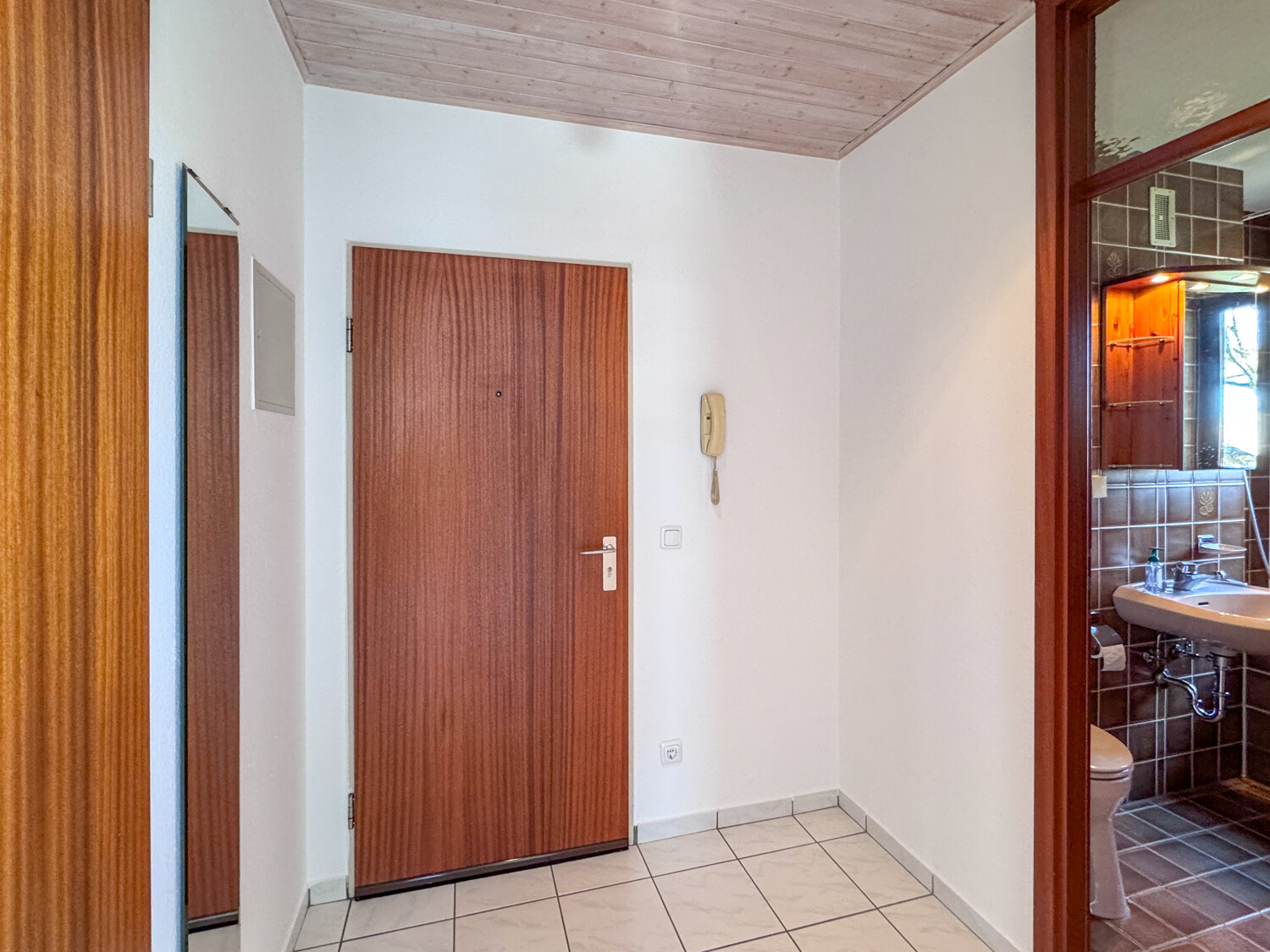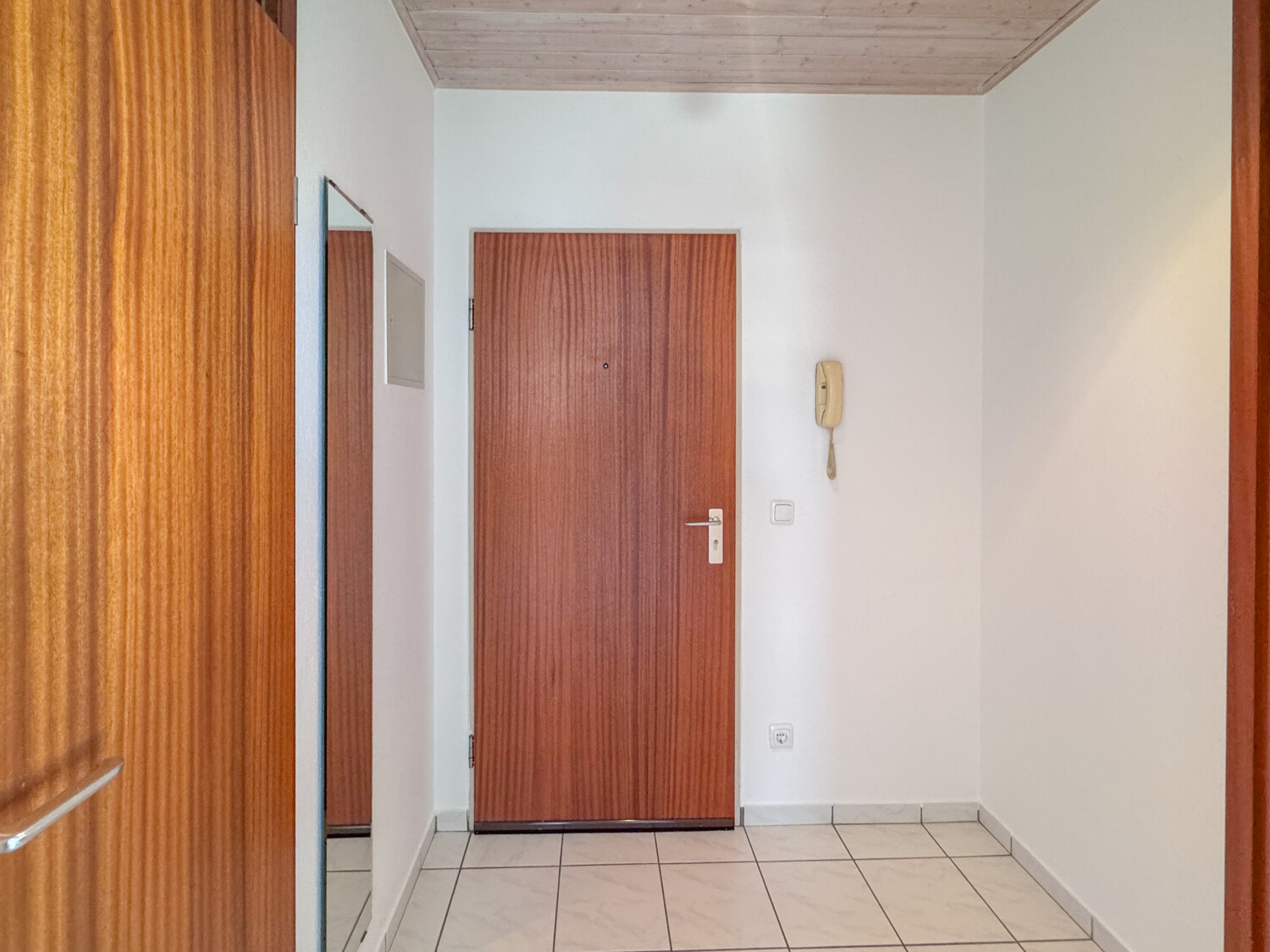 Beim Betreten der Wohnung werden Sie von einer kleinen Diele empfangen, die Zugang zu allen Räumen bietet. Direkt links neben dem Eingang befindet sich das Tageslicht Wannenbad.