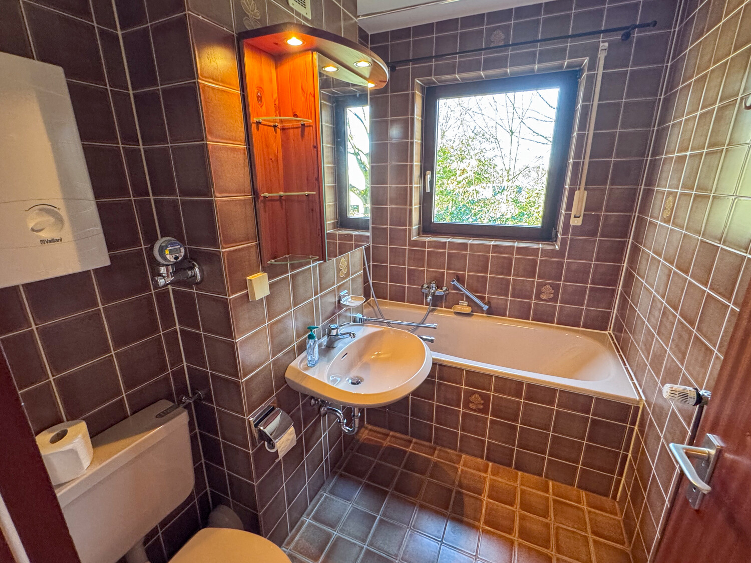 - Bad: Badewanne, WC, Waschbecken, Spiegel, Fenster